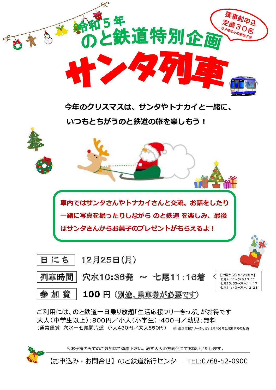 観光列車のと里山里海号観光列車予約センターTEL.0768-52-2300(10:00-17:00 火曜定休)